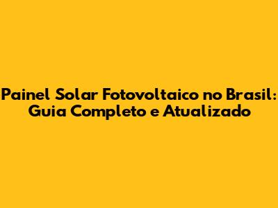 Painel Solar Fotovoltaico No Brasil: Guia Completo E Atualizado