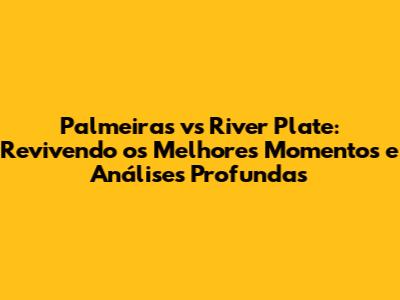 Palmeiras Vs River: Momentos Épicos E Análise Completa