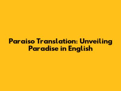 Paraiso Translation: Unveiling Paradise In English