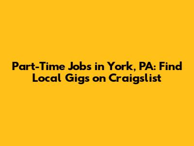 York, PA, offers a diverse range of part-time job opportunities. Here are some of the most common types of part-time jobs you can find on Craigslist:
