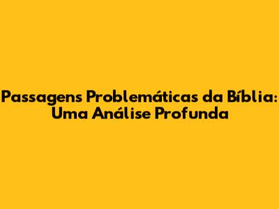 Passagens Problemáticas Da Bíblia: Uma Análise Profunda