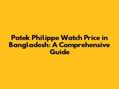 Patek Philippe Watch Price In Bangladesh: A Comprehensive Guide
