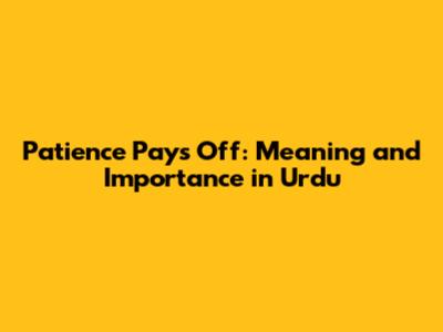 Patience Pays Off: Meaning And Importance In Urdu