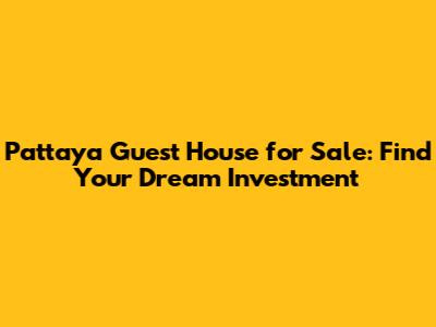 Pattaya Guest House For Sale: Find Your Dream Investment