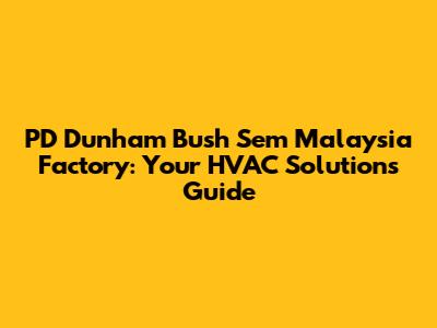 What is PD Dunham Bush Sem Malaysia Factory? – An Overview
