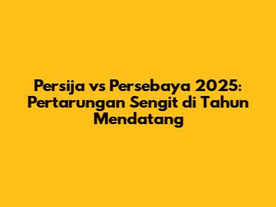 Persija vs Persebaya 2025 akan menjadi salah satu pertandingan paling menarik dalam Liga 1. Pertarungan sengit antara dua tim besar ini akan menyajikan drama, emosi, dan semangat juang yang membara. Baik Persija maupun Persebaya, keduanya akan berjuang mati-matian untuk meraih kemenangan. Jadwal pertandingan, prediksi pemain, dan kilas balik sejarah akan menjadi informasi yang sangat dinanti-nantikan oleh para penggemar sepak bola Indonesia. Mari kita nantikan bersama, duel panas antara Persija Jakarta dan Persebaya Surabaya di tahun 2025!