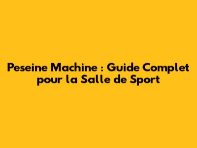 Peseine Machine : Guide Complet Pour La Salle De Sport