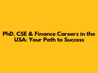 PhD, CSE & Finance Careers In The USA