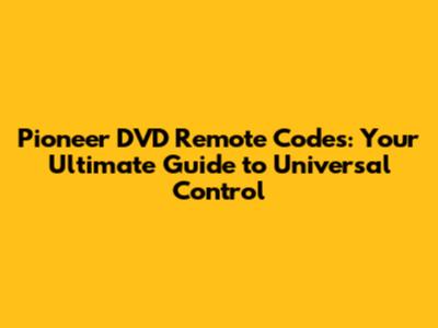 Pioneer DVD Remote Codes: Unlock Your Entertainment