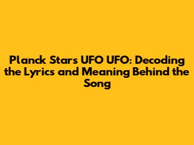 Planck Stars UFO UFO: Song Lyrics And Meaning