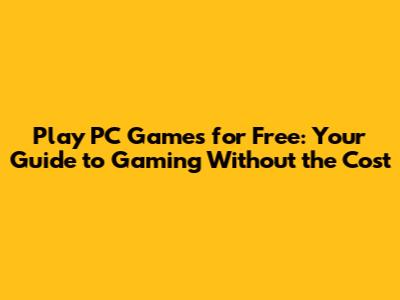 Play PC Games For Free: Your Guide To Gaming Without The Cost