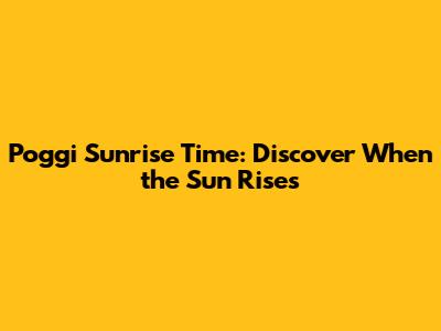 Poggi Sunrise Time: Discover When The Sun Rises