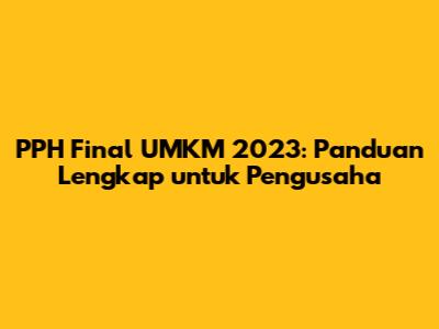 PPH Final UMKM 2023 menawarkan solusi yang tepat bagi para pengusaha UMKM di Indonesia. Dengan persentase yang hanya 0,5% dari omzet, skema ini memberikan kemudahan, kesederhanaan, dan efisiensi dalam memenuhi kewajiban pajak. Pemahaman yang baik tentang PPH Final, cara menghitungnya, dan tips mengelolanya akan membantu kalian menjalankan bisnis secara legal, efisien, dan berkelanjutan. Ingat, guys, kepatuhan pajak adalah kunci untuk pertumbuhan bisnis yang berkelanjutan. Jadi, jangan ragu untuk memanfaatkan skema PPH Final ini dan fokuslah pada pengembangan bisnis kalian.