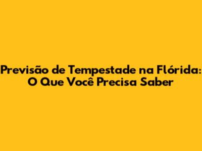 Previsão De Tempestade Na Flórida: O Que Você Precisa Saber