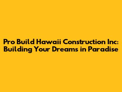 Pro Build Hawaii: Your Construction Experts