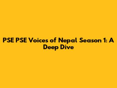 PSE PSE Voices Of Nepal Season 1: A Deep Dive