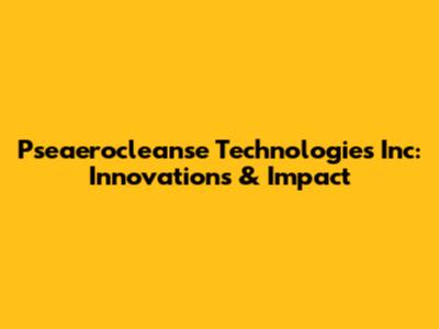 Pseaerocleanse Technologies Inc: Innovations & Impact