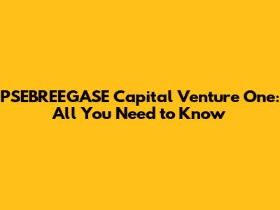 PSEBREEGASE Capital Venture One: All You Need To Know