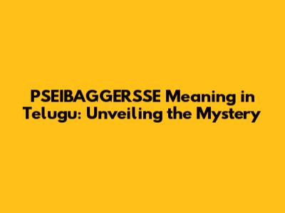 PSEIBAGGERSSE Meaning In Telugu: Unveiling The Mystery
