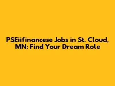 PSEiifinancese Jobs In St. Cloud, MN: Find Your Dream Role