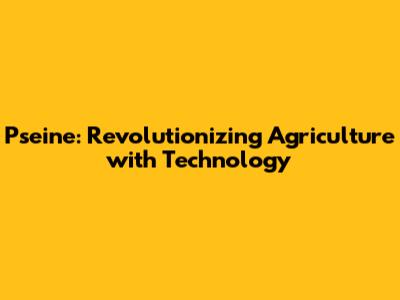 Pseine: Revolutionizing Agriculture With Technology