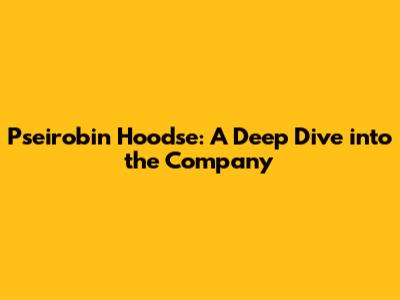 Pseirobin Hoodse: Unveiling The Company And Its Impact