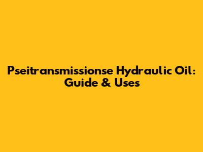 Pseitransmissionse Hydraulic Oil: Guide & Uses
