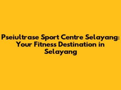 Hey guys! Are you on the hunt for the ultimate spot to kickstart your fitness journey in Selayang? Look no further! The Pseiultrase Sport Centre is here to revolutionize your workout experience. This isn't just another gym; it's a comprehensive fitness hub designed to cater to all your health and wellness needs. Whether you're a seasoned athlete or just beginning to explore the world of fitness, Pseiultrase Sport Centre offers something for everyone. Let's dive into what makes this place the go-to destination for fitness enthusiasts in Selayang.