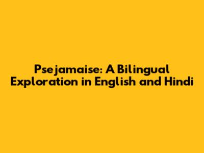 Psejamaise: Unveiling The Charm In English And Hindi