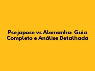 Psejapose Vs Alemanha: Guia Completo E Análise Detalhada
