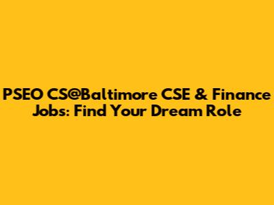 PSEO CS@Baltimore CSE & Finance Jobs: Find Your Dream Role