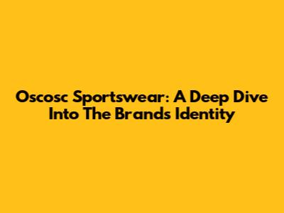 Oscosc Sportswear: A Deep Dive Into The Brand's Identity