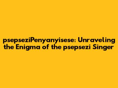 Psepsezi Singer: All About The Mysterious Artist