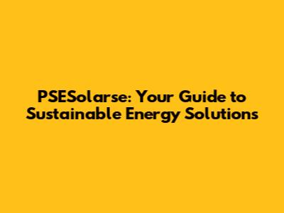PSESolarse: Your Guide To Sustainable Energy Solutions
