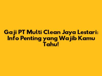 PT Multi Clean Jaya Lestari: Gaji & Info Penting!