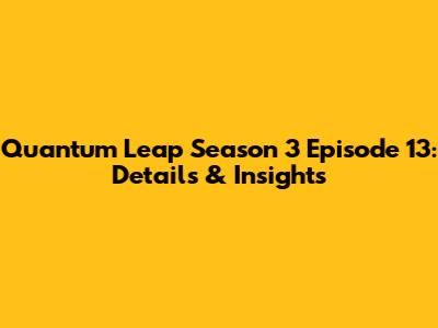 Quantum Leap Season 3 Ep 13: Details & Insights