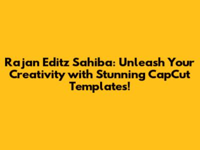 Hey guys! Are you looking to take your video editing game to the next level? Look no further! In this article, we're diving deep into the world of Rajan Editz Sahiba CapCut templates, exploring how they can transform your videos from ordinary to extraordinary. Get ready to discover a treasure trove of creative possibilities and learn how to make the most of these amazing resources. Let's jump right in!