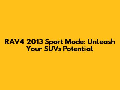 RAV4 2013 Sport Mode: Unleash Your SUV's Potential