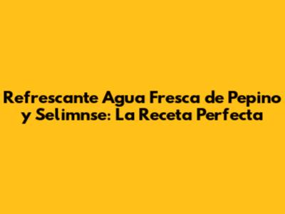 Refrescante Agua Fresca De Pepino Y Selimnse: La Receta Perfecta