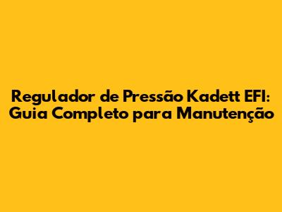 Regulador De Pressão Kadett EFI: Guia Completo Para Manutenção