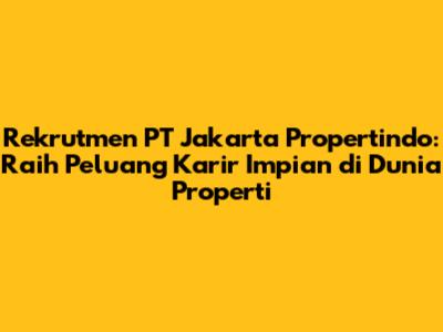 Rekrutmen PT Jakarta Propertindo: Peluang Karir Properti Impian
