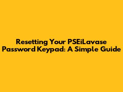Resetting Your PSEiLavase Password Keypad: A Simple Guide