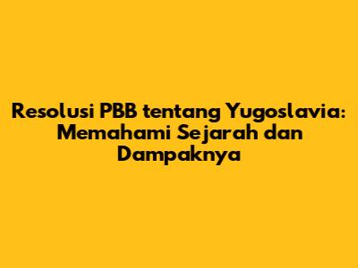 Resolusi PBB Tentang Yugoslavia: Panduan Lengkap