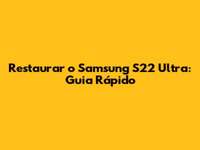 Restaurar O Samsung S22 Ultra: Guia Rápido