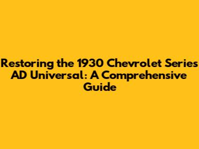 Hey car enthusiasts! Are you guys ready to dive headfirst into the fascinating world of classic car restoration? Today, we're going to explore the 1930 Chevrolet Series AD Universal, a true gem from automotive history. This guide is your ultimate companion, covering everything from understanding its history and specifications to the nitty-gritty of restoration. Get ready to turn back the clock and bring this beauty back to its former glory. Let's get started!