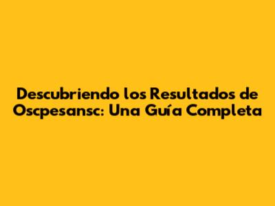 ¿Qué Son Exactamente los Resultados de Oscpesansc?