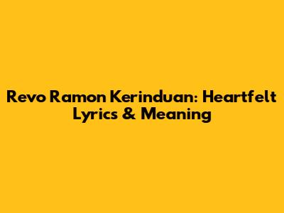 Revo Ramon Kerinduan: Heartfelt Lyrics & Meaning