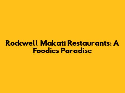 Rockwell Makati Restaurants: Your Ultimate Dining Guide