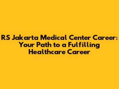 RS Jakarta Medical Center: Your Career Path In Healthcare