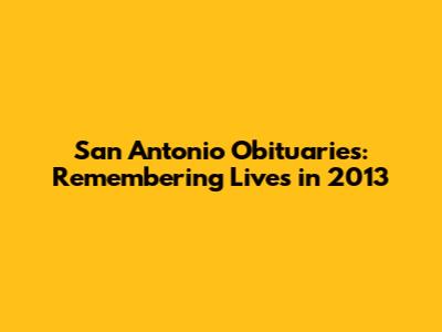 In 2013, San Antonio, like any other city, experienced the loss of many individuals who contributed to its unique character. Each obituary from that year tells a story, reflecting the diverse backgrounds, experiences, and contributions of the deceased. By examining these obituaries, we can gain a deeper appreciation for the individuals who helped shape San Antonio into the vibrant city it is today. Obituaries also provide closure for family members and friends, allowing them to publicly acknowledge their loss and celebrate the life of their loved one. They serve as a focal point for mourning and remembrance, bringing people together to share memories and offer support.